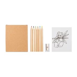 składa się z 6 kredek, temperówki i 20 kolorowanek.